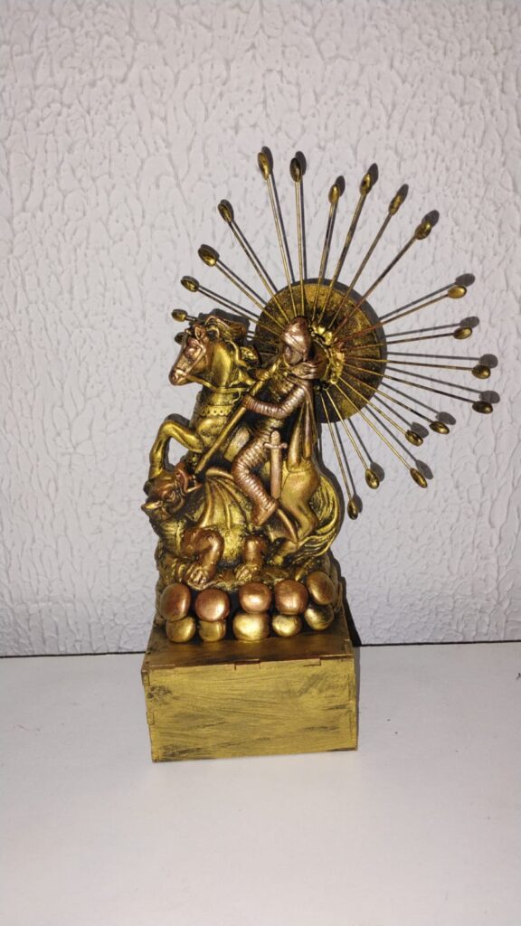 Explore imagens que revelam a criatividade e o cuidado em cada obra artesanal do nosso ateliê sustentável. Aqui você irá encontrar algumas das nossas obras que representa alguns santos católicos.