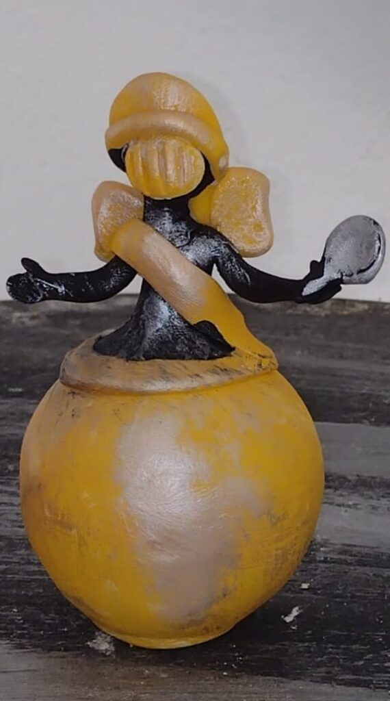Explore nossa galeria, onde cada peça revela a paixão pela reutilização e a beleza da sustentabilidade artesanal. Nessa categoria será exibidos esculturas de entidades de matriz africana feita de papelão, telas, cerâmica e garrafas pet.