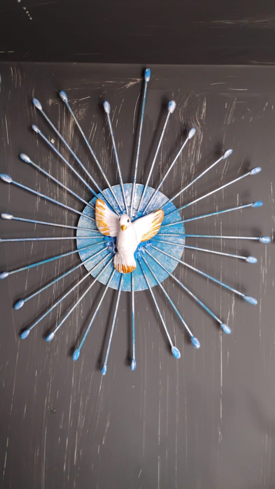 Quadro Feito de Material reciclável: tela plástica, CD´s, tinta metálica