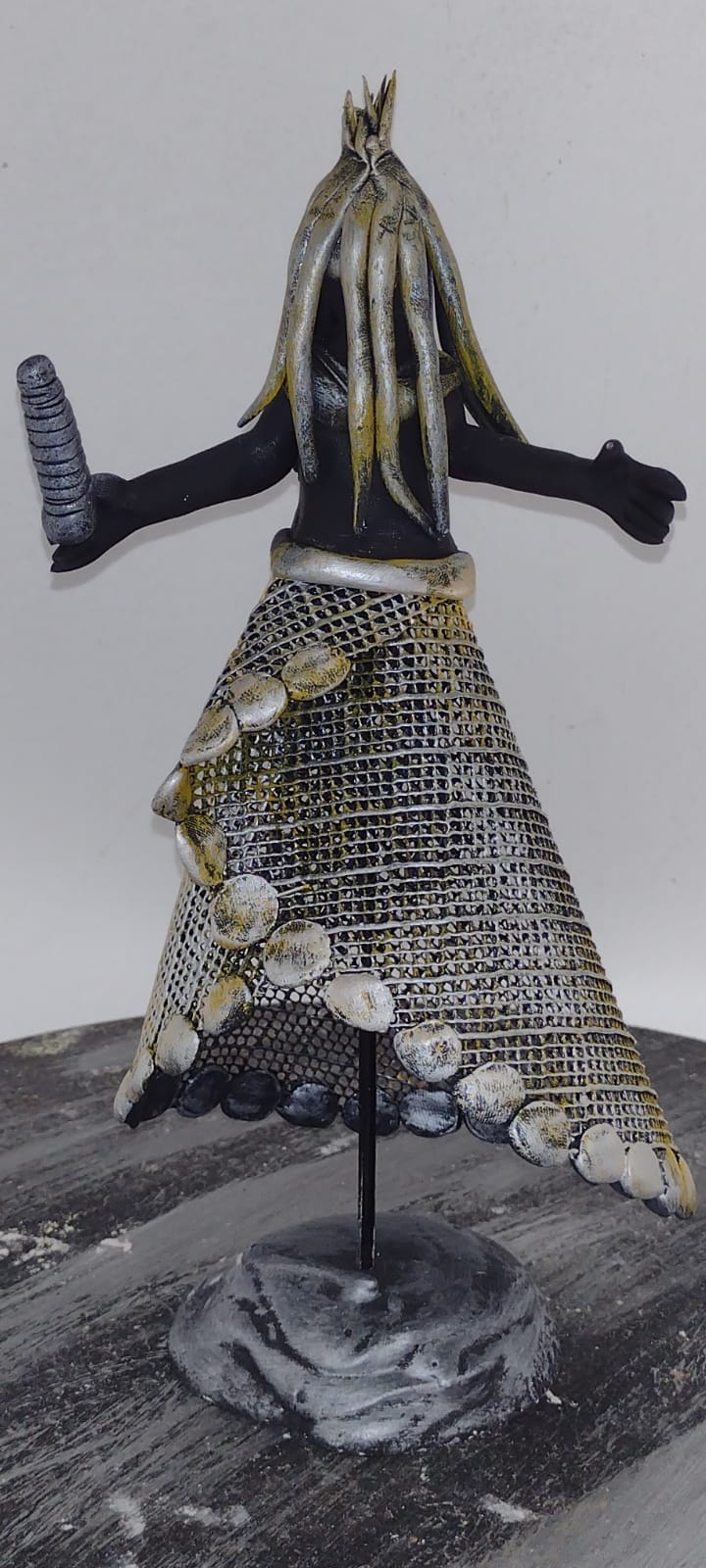 Escultura feito de tela, cerâmica plástica e pintura metálica. Obaluaê é um dos orixás mais marcantes e reverenciados do panteão africano. Sua ligação com a cura e a transformação o torna essencial nas religiões de matriz africana.